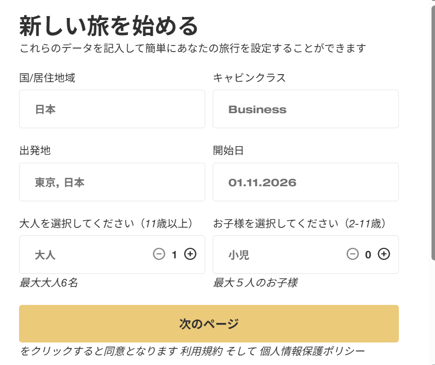 最初に、「新しい旅を始める」から情報を入力してスタートします。