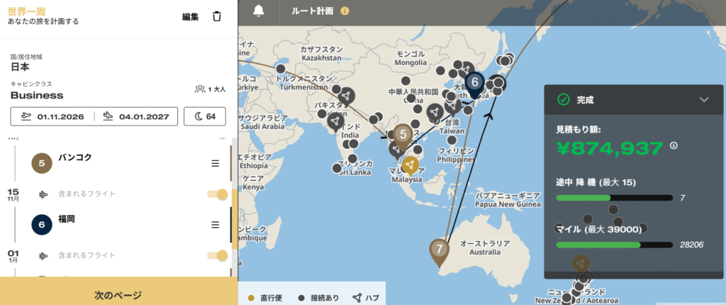 世界一周航空券の旅程を組み立てるツールが新しくなっており、ルールの一部や使い方が以前調べたときと少し変わっていました。でも、以前に比べて使いやすくなっていると思います。