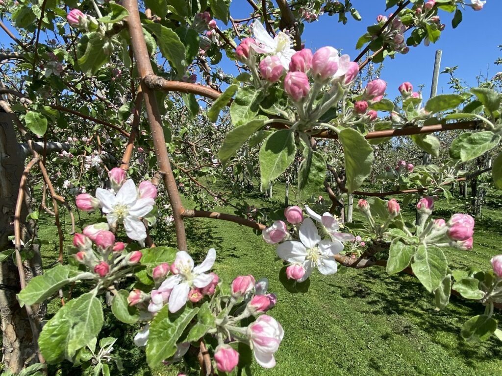 実際には、もっといろんな種類のりんごの花が咲いていて、りんごの花好きには(そうでない方にも)おすすめの場所です。
