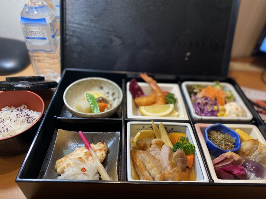 上の写真のお弁当は、コロナ禍に泊まった時の夕食です。出来立てを部屋まで持ってくれたので、熱々の夕食をいただくことができました。アートホテルのレストランは食事が美味しいのですが、このお弁当も期待以上でした。