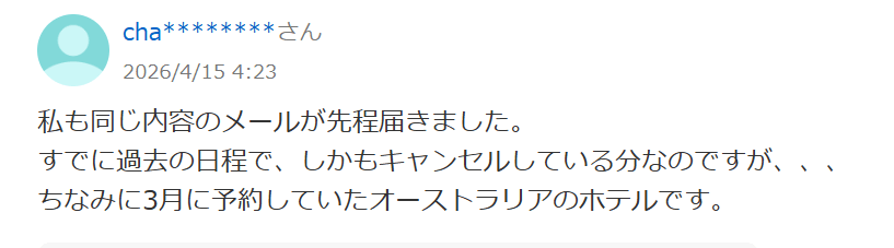 なので、私だけでなく、警告メールを受け取った利用者が、メールの正当性を疑うケースが続出したようです。通常、何かあった時の通知は、複数のチャンネルで伝えられますものね。こういった点にBooking.comの脆弱性があるのでしょうか。