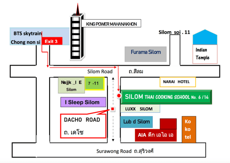 BTSのチョンノンシー(Chong non si)駅から徒歩10分くらいの場所に、今回予約したクッキングスクールがあります。