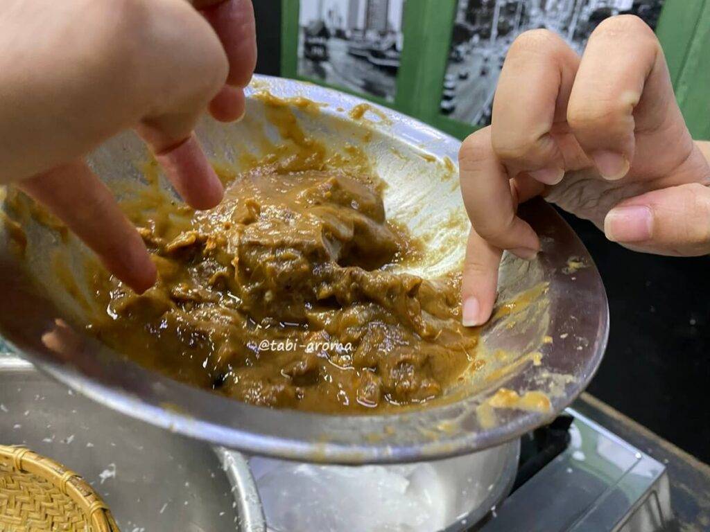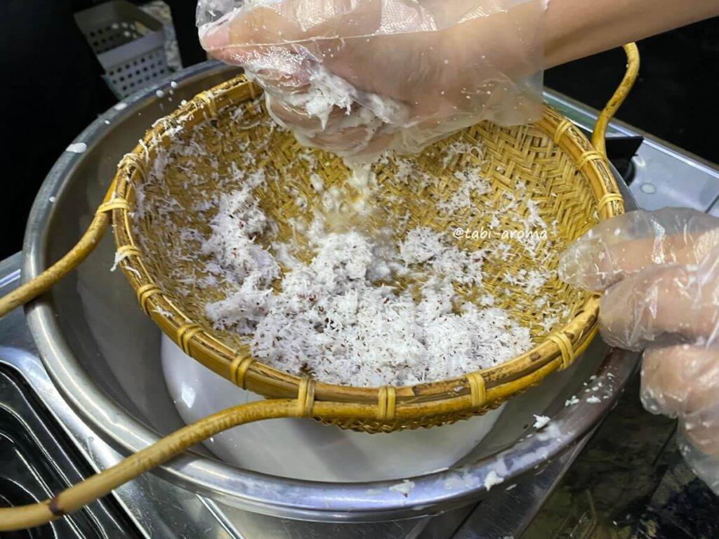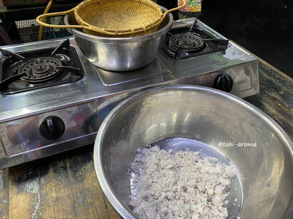 これにお水を加え、ココナッツミルクを抽出します。ココナッツミルクはあまり好きではないのですが、作り立ては独特の匂いがせず、とても美味しかったです。