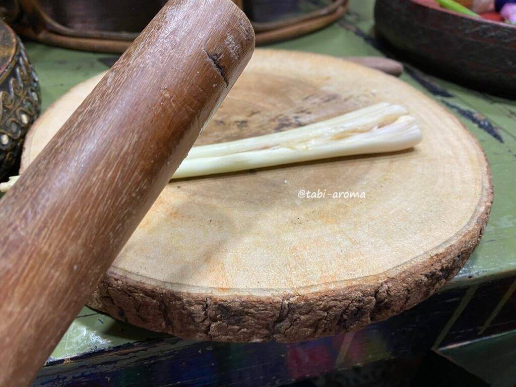 レモングラスが棒でたたいてから、適度な大きなにカットします。
