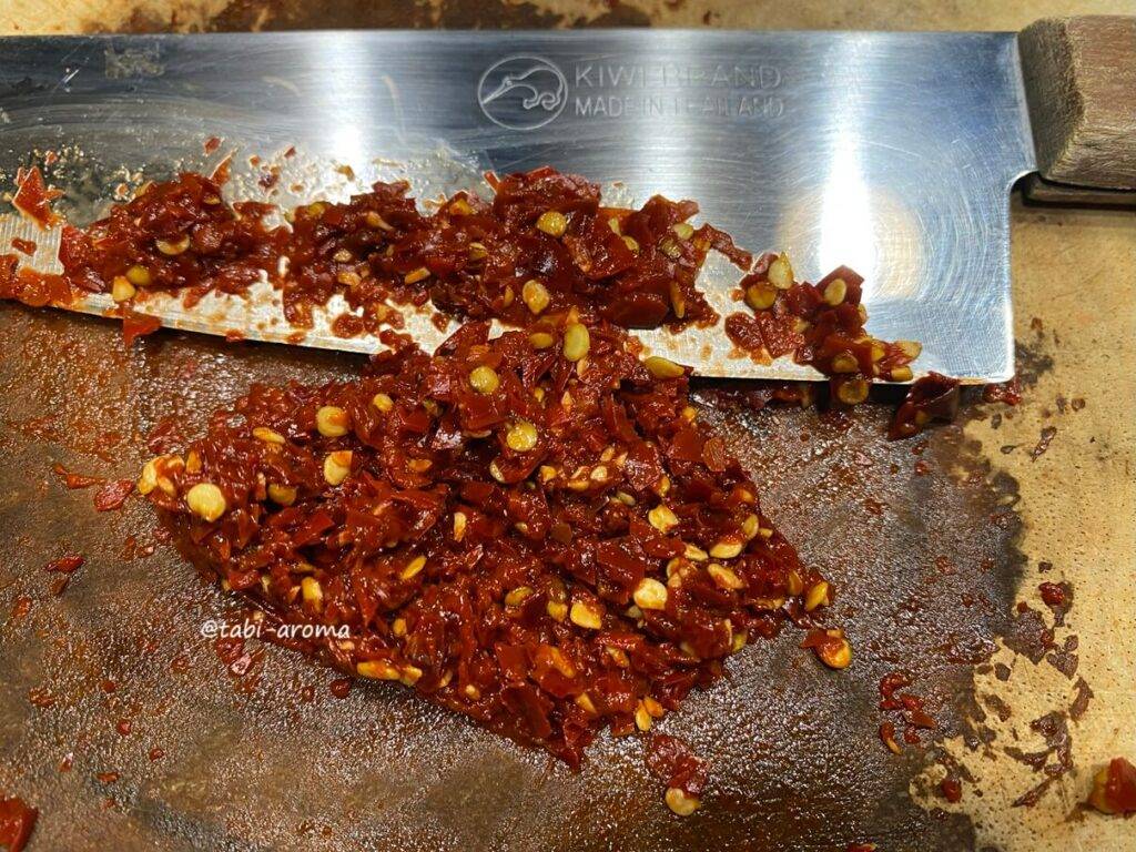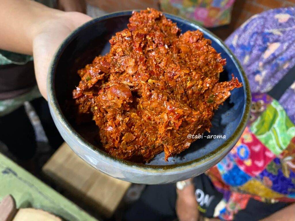 上の写真は、同じようなチリペーストですが、右はベジタリアン用のものです。実際にチリペーストを作る体験をしましたが、かなりの手間です。ここは簡単に美味しくできる調味料の存在がありがたいと実感しました。