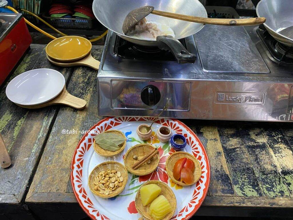 ジャガイモは既に茹でてあるものが用意されていました。マッサマンカレーにはシナモンが入っているのですね。