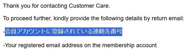 担当者に再度、会員番号や登録メールアドレスなどを聞かれ、『本社の関連部署からのメールをお待ちください』と伝えられました。