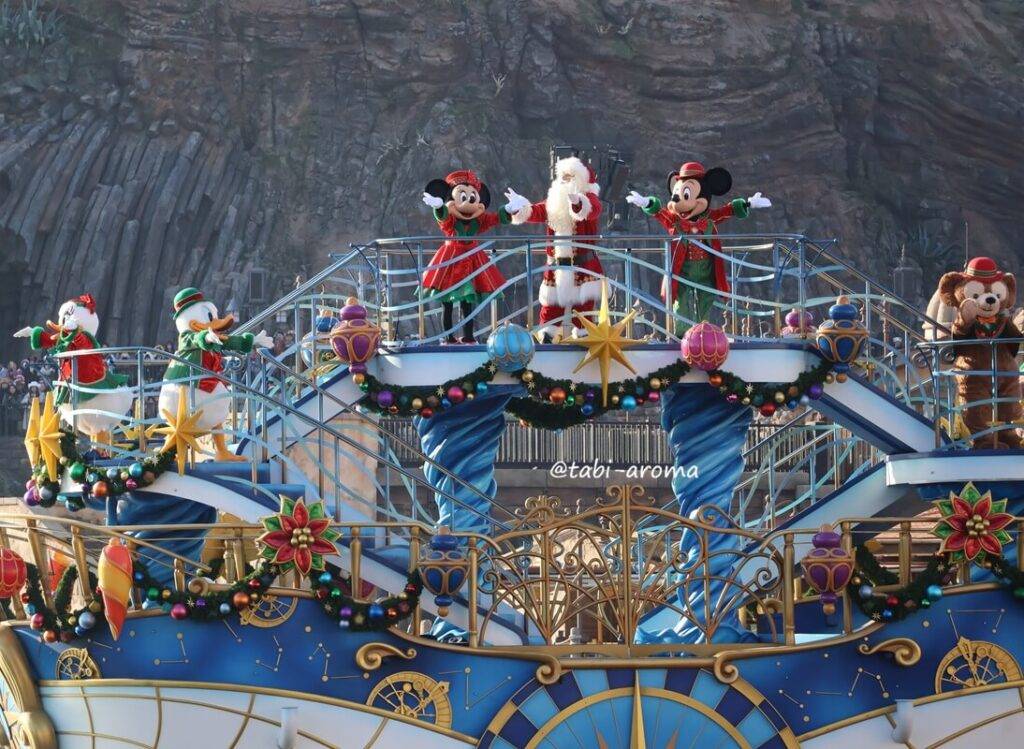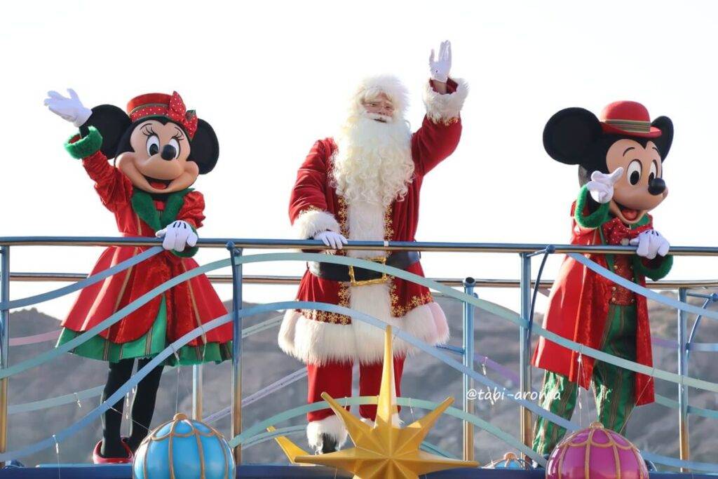 ファンタジースプリングスホテルに泊まると、東京ディズニーシーだけでなくランドのハッピーエントリーもできます。ランドではクリスマスのパレードを開催しているので、友人たちは、ランドに行きました。
