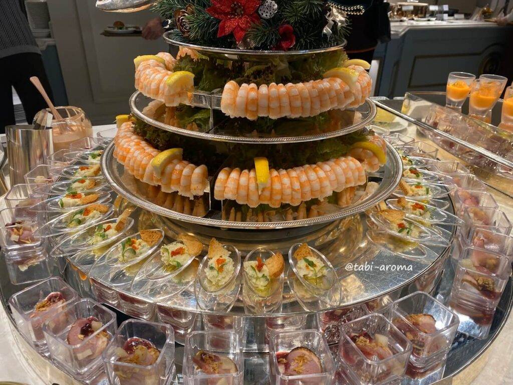 ちょうど、クリスマス・ランチブッフェが開催されており、華やかなお料理が並んでいました。