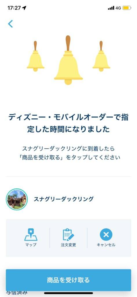 時間になったら「商品を受け取る」をタップします。その後、商品を受け取ると決済画面に変わります。