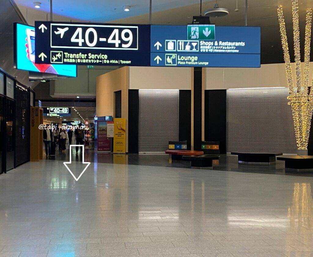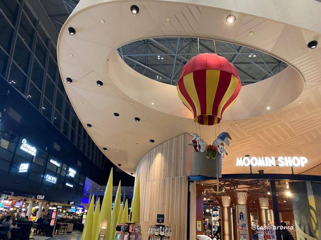 フィンエアーのラウンジの目印は、ムーミンショップ。ムーミンが見えたら、ラウンジはもうすぐ、すぐそばにあります。