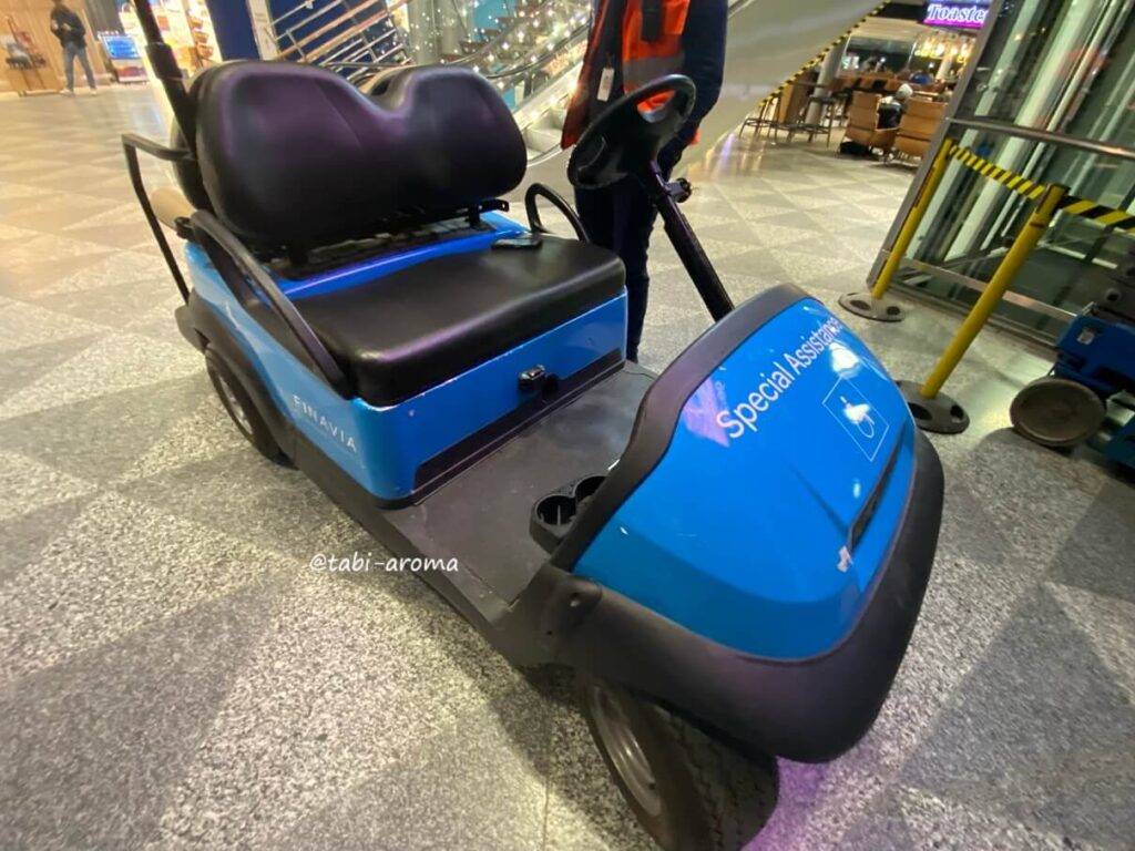 保安検査を過ぎた後、電動カートに乗り換えました。