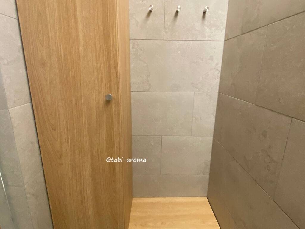 サウナはありませんが、木のぬくもりを感じるシャワールームでした。