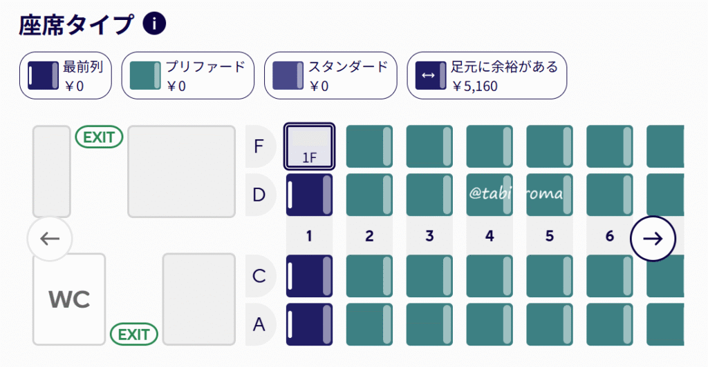 - Platinum会員、Platinum Lumo会員、oneworldのエメラルド会員、さらに同じ予約(団体予約を除く)で同伴する旅客については、無料ですべての座席タイプを選べます。