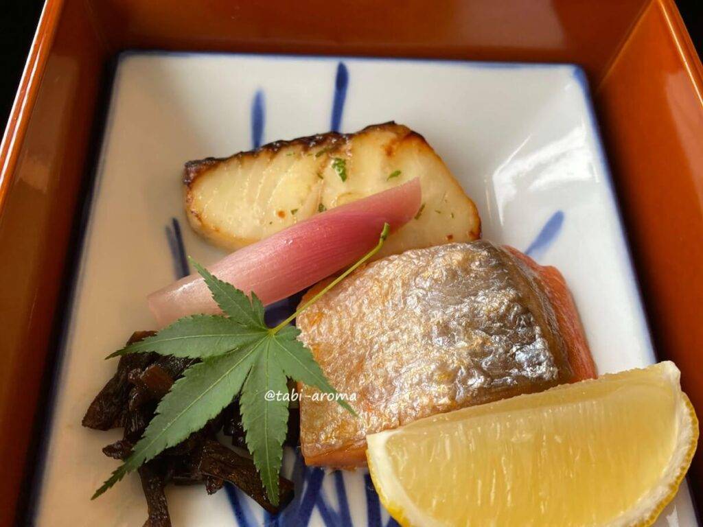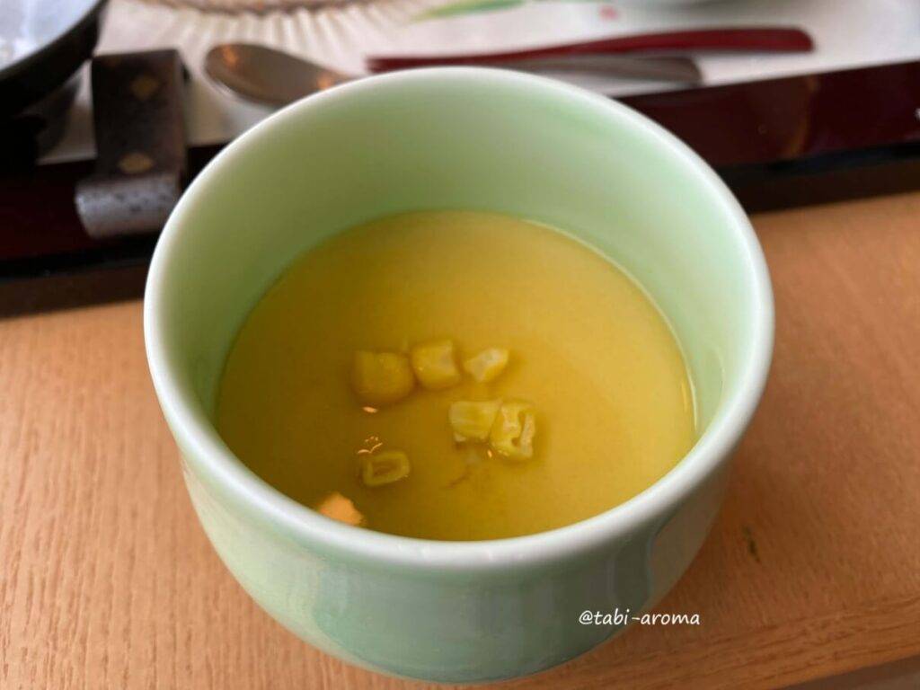 どれも美味しいのですが、特に焼き魚が好みの味でした。茶碗蒸しは冷製で、優しいトウモロコシ味。お料理から夏を感じました。
