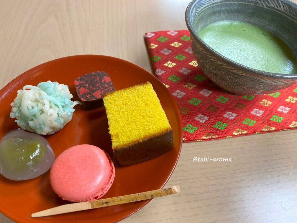 ラウンジのカウンターには自由にいただけるお菓子も並んでいますが、その他の和菓子は、リクエストベースになります。いくつか種類があり、迷っていると『全部乗せもありますよ』とすすめられました。なので、全部乗せにしてみました^^