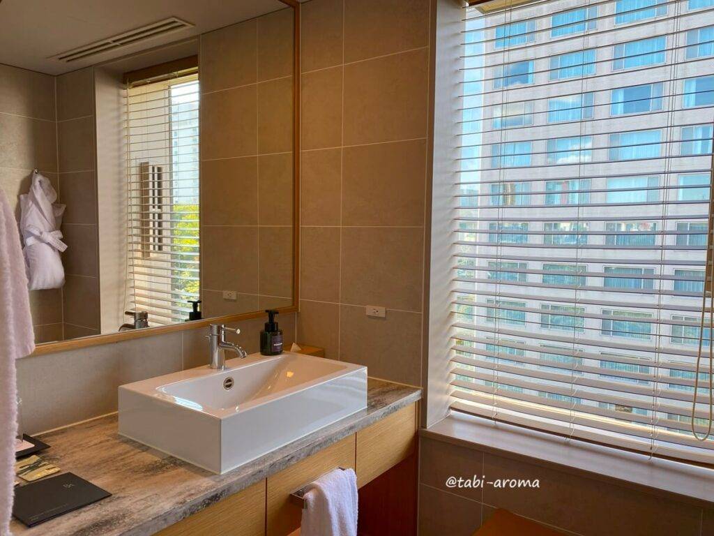 バスタブのそばにも大きな窓がついていて、明るい雰囲気。