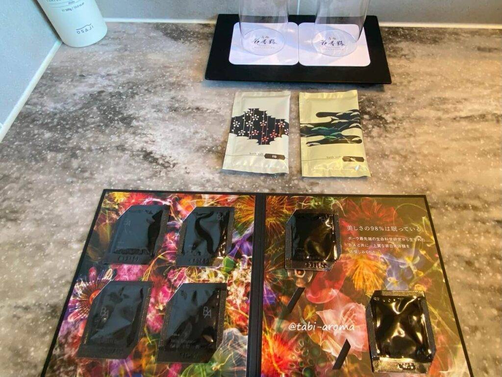 化粧水など基礎化粧品だけでなく、入浴剤も用意されていました。