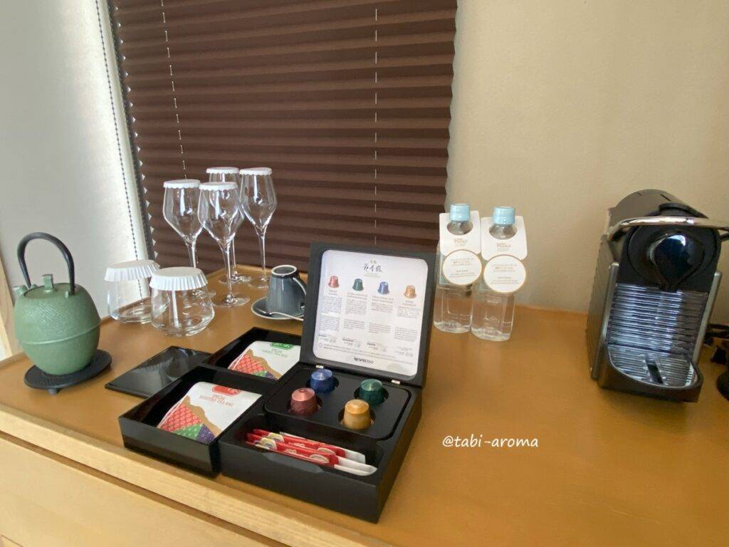 ペットボトルの水は2本用意されていましたが、ターンダウンの時にさらに2本用意してくれていました。いつもはコーヒーをいただくのですが、この日は日本茶にしてみました。ほうじ茶が香り豊かでおいしかったです。