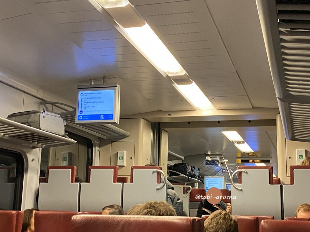 ヘルシンキ中央駅までなら直通、P線 Iと I線 の2種類があるのですが、どちらに乗っても行けます。なので、ホームに来た電車に乗ればOK。所要時間はどちらの線も30分程度です。