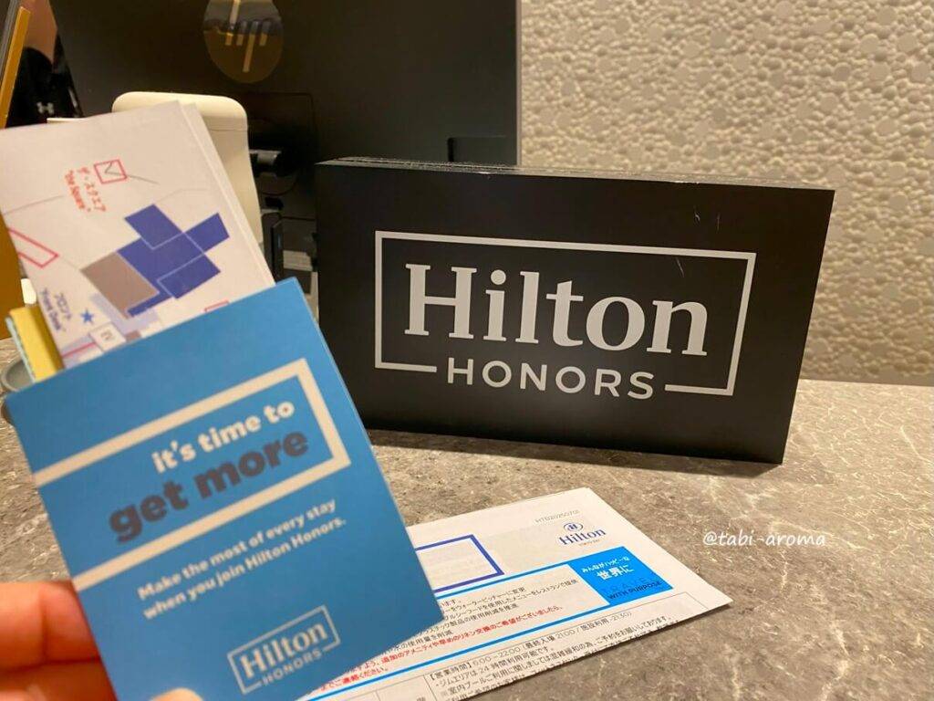 今回は、友人の会社の福利厚生を利用しての宿泊(近畿日本ツーリストを通しての予約)だったのですが、ヒルトンの会員特典の一部が利用できました。