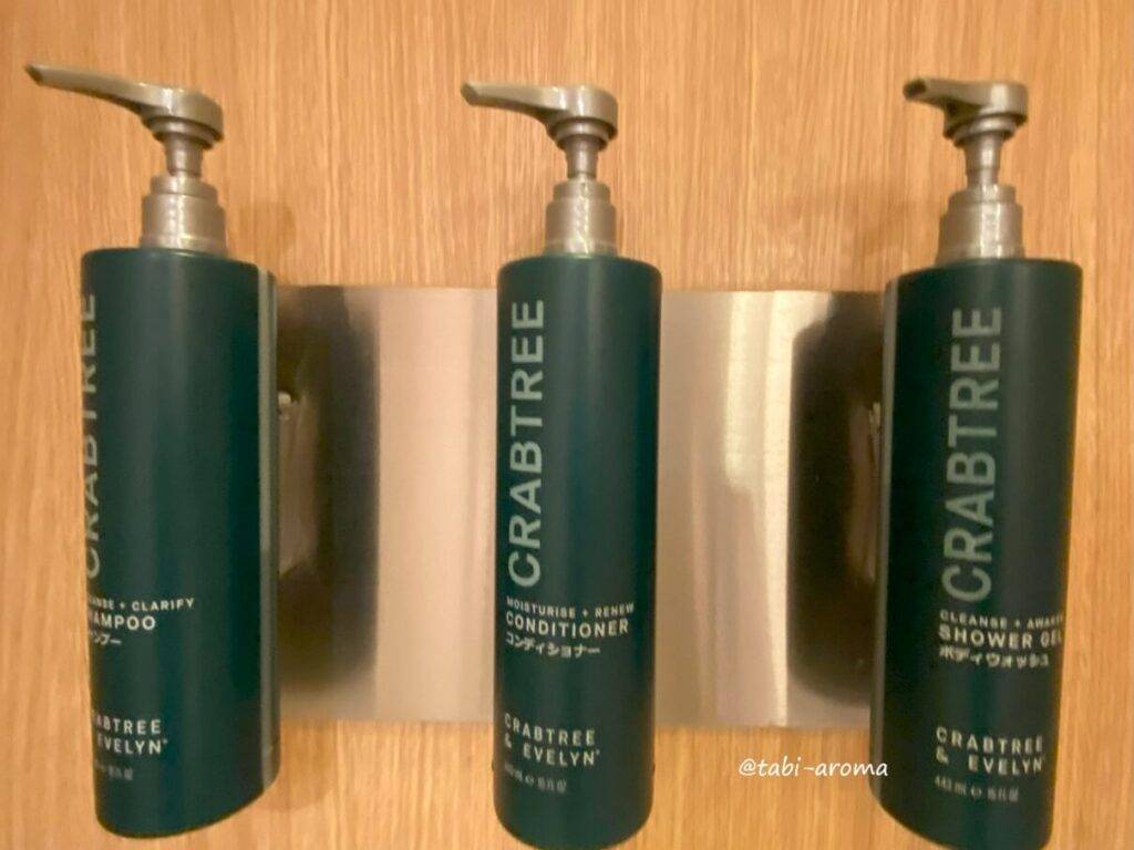 シャンプーやコンディショナーはウッディ系の香りで使い心地もよかったです。