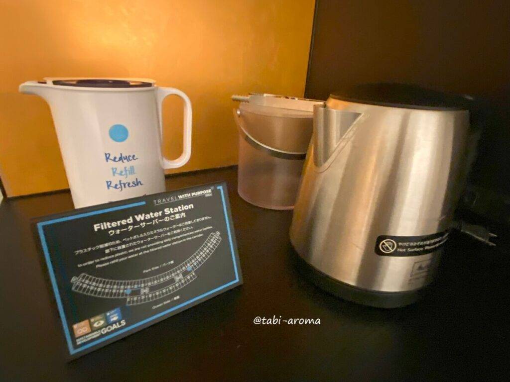部屋にペットボトルのお水はありませんが、ウォーターサーバーや製氷機があるので、全く不自由は感じません。今回の部屋は、そのウォーターサーバーの近くだったのでとても便利でした。