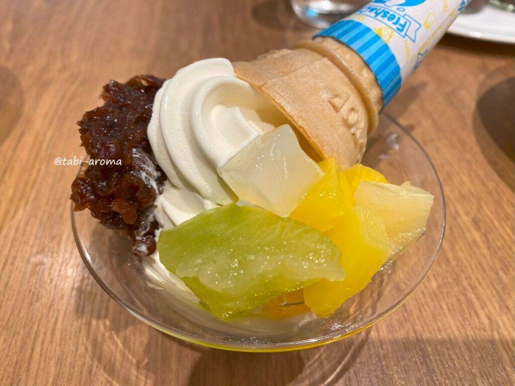 最後は、自分で盛れるソフトクリームに大好きな餡子とフルーツを乗せてみました。お腹いっぱい^^