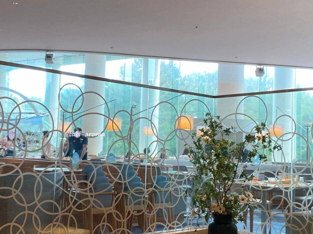パークへ行く人のことを考えた早いスタートです。この日は土曜日だったので、通常のレストラン以外にもラウンジも開放されていました。こちらのラウンジは、スィーツブッフェなどをいただける場所でもあります。