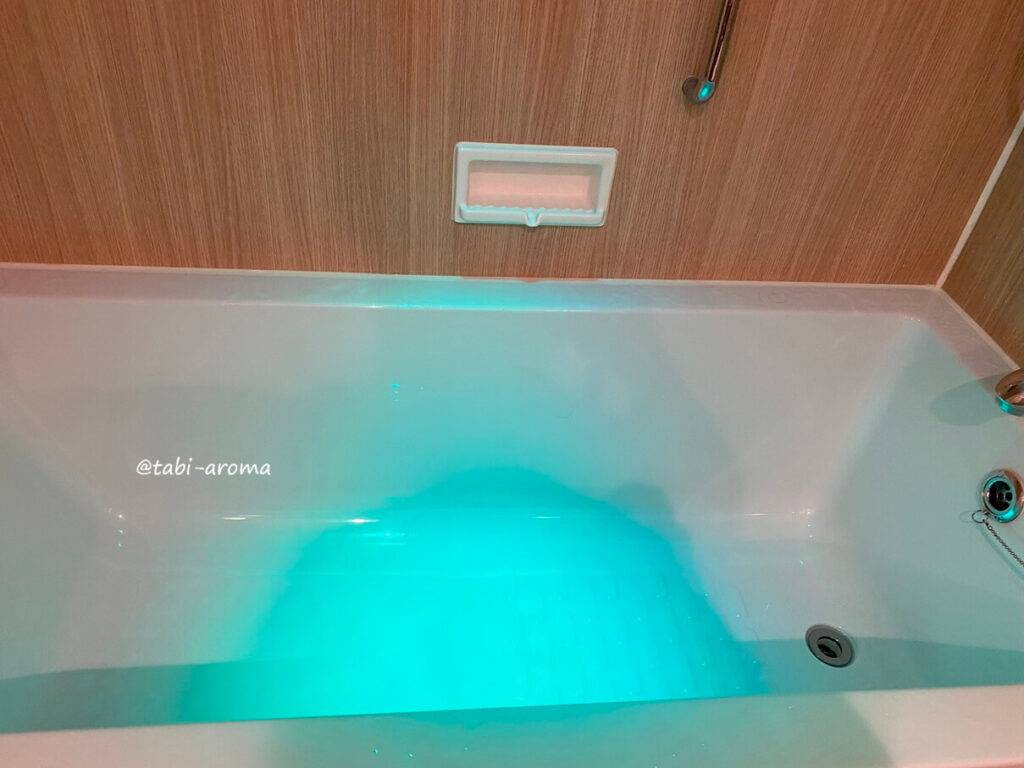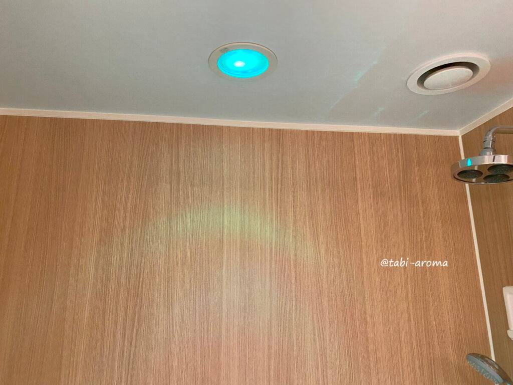 ちなみに、天井にライトがあって、2つのモードを選ぶことができます。青の洞窟のようなブルーは cool モード。あまりにも快適なので、朝晩2回も入ってしまいました^^