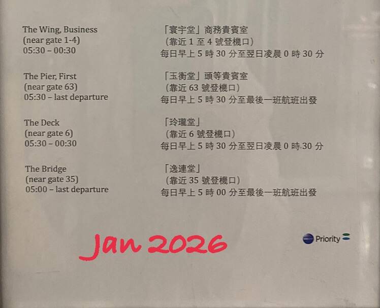 代わりに The Bridge が再開しました。そのため、一番遅くまで開いているのが The Bridge になっていました。以前は、関西国際空港行きの便は最終だったのですが、2026年1月に行ったとき、ニューヨーク行き(2:20発)の便が最終便になっていました。この時は、遅延していたのか、深夜3時過ぎまでラウンジ(The Bridge)にいることができました。