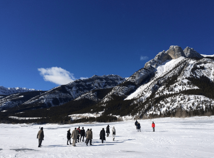 日本でも見られるようで、行く前にTVで放送されているのを見て期待大でやってきました。お天気に左右される真冬の自然現象の見学ですが、この日は晴天に恵まれました。風もなく、絶好のアイスバブル日和です!今回は、一番よく見えると言われている アブラハムレイク (Abraham Lake) へ行きました。