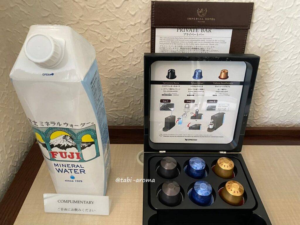 大きな紙パックの水。ネスプレッソも機械もあるのですが、ドリプ式のコーヒーも用意されていました。