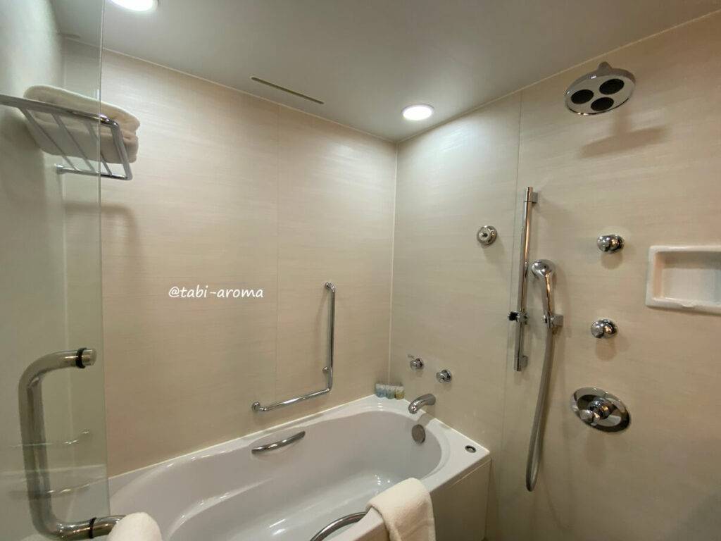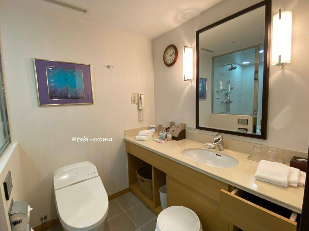 浴槽は使わなかったのですが、広くてゆっくりできそうです。厚手のタオルやバスローブはラグジュアリーホテルならではの贅沢ですね。