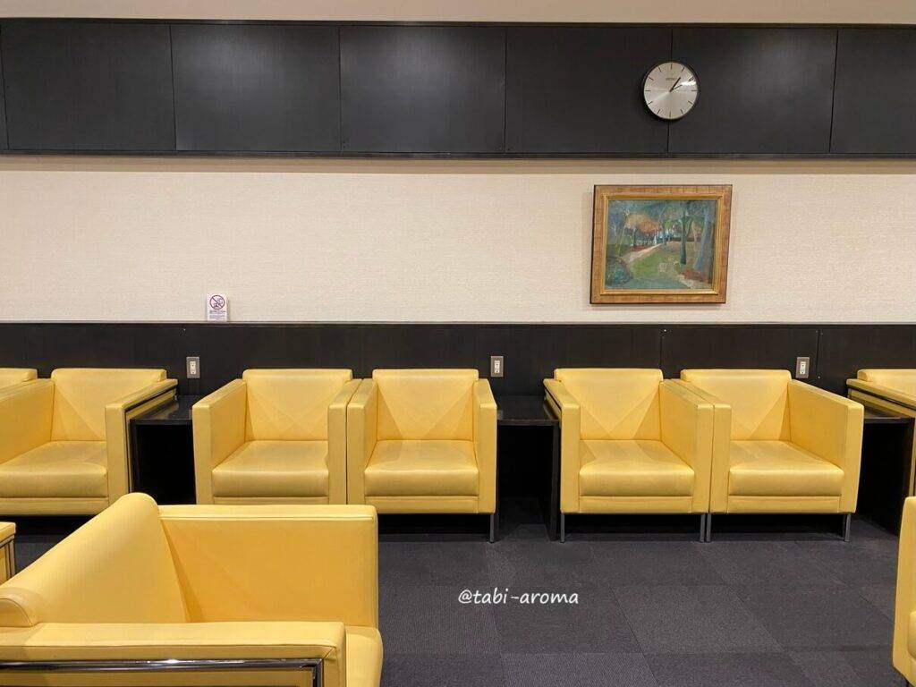 こじんまりしたラウンジですが、搭乗まで寛げる無料の場所があるのはありがたいです。小さな空港ですが、搭乗30分前には保安検査を通過できるように準備しましょう。帰りは搭乗予定便の遅れはないようです。