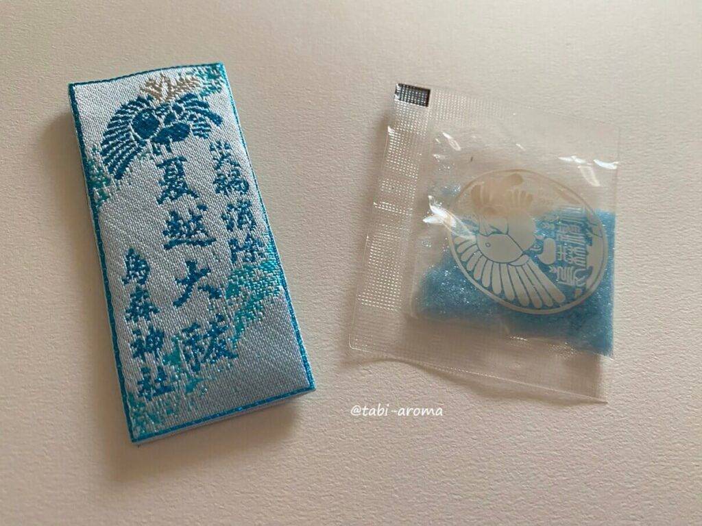 災禍消除(さいかしょうじょ)のお守りとお塩を併せて授与してくれました。このお塩は御朱印の色に合わせており、ひな祭りの時期はピンクとなっているそうです。
