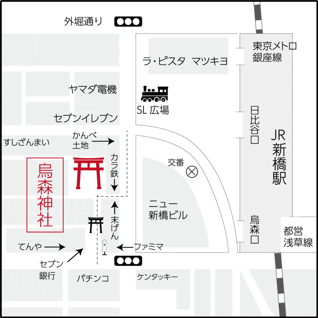今回は、そんな「烏森神社」までのアクセスと詳細をご紹介いたします。