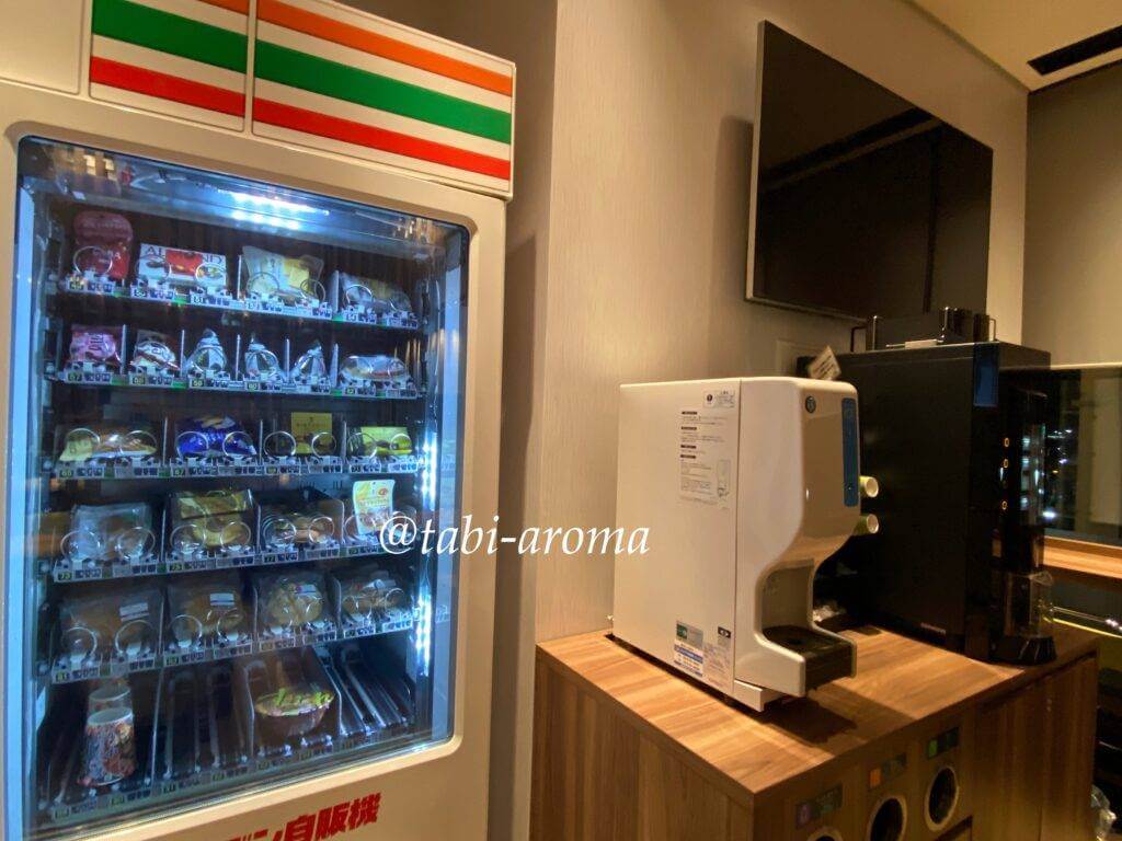 ホテル内にコンビニエンスストアは併設されていませんが、マスクや下着などを買える自動販売機もありました。無駄なものを省いて必要最小限のものを用意しているといった感じです。なお、徒歩圏にコンビニエンスストアもあるそうです。