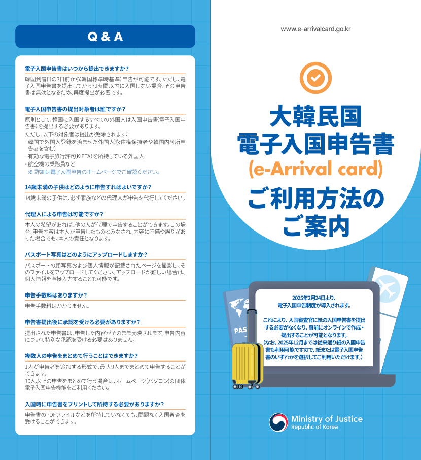 さらに、2025年2月24日から韓国で電子入国申告書(e-Arrival card))の制度が始まりました。