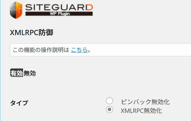 これなら私でもできます。「XMLRPC防除」を「有効」にして、XMLRPC無効化するだけです。