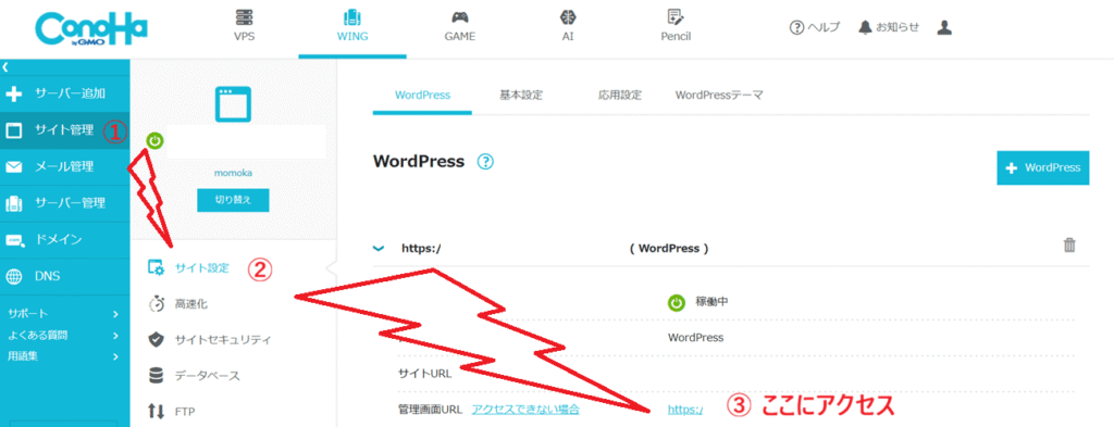 Conoha WING の管理画面からアクセスできることを見つけました。