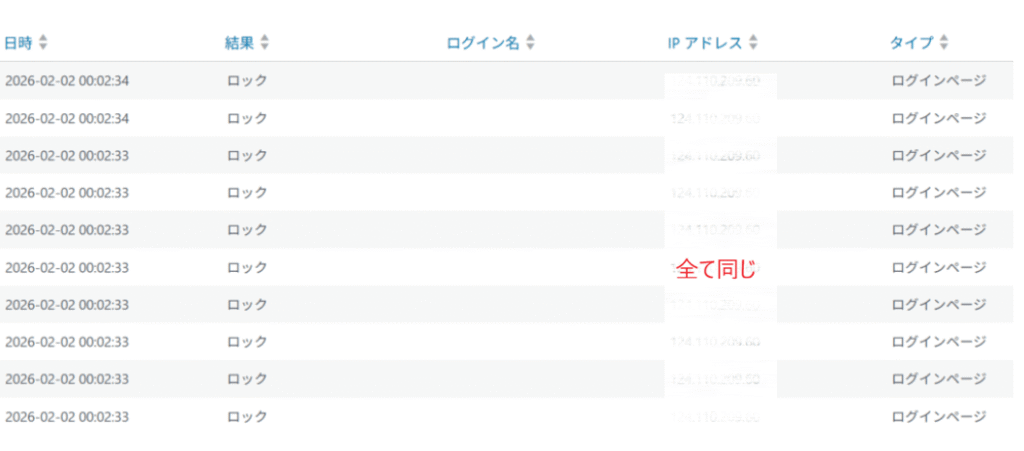 同じIPアドレスから1秒間に百回以上となると機械ですね。でも、他のIPアドレスから1回、もしくは2回の攻撃もあったので侮れません。