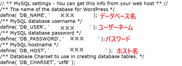 私の場合、データベース名やユーザーネームは同じでした(新しいものに置き変わっていた?)