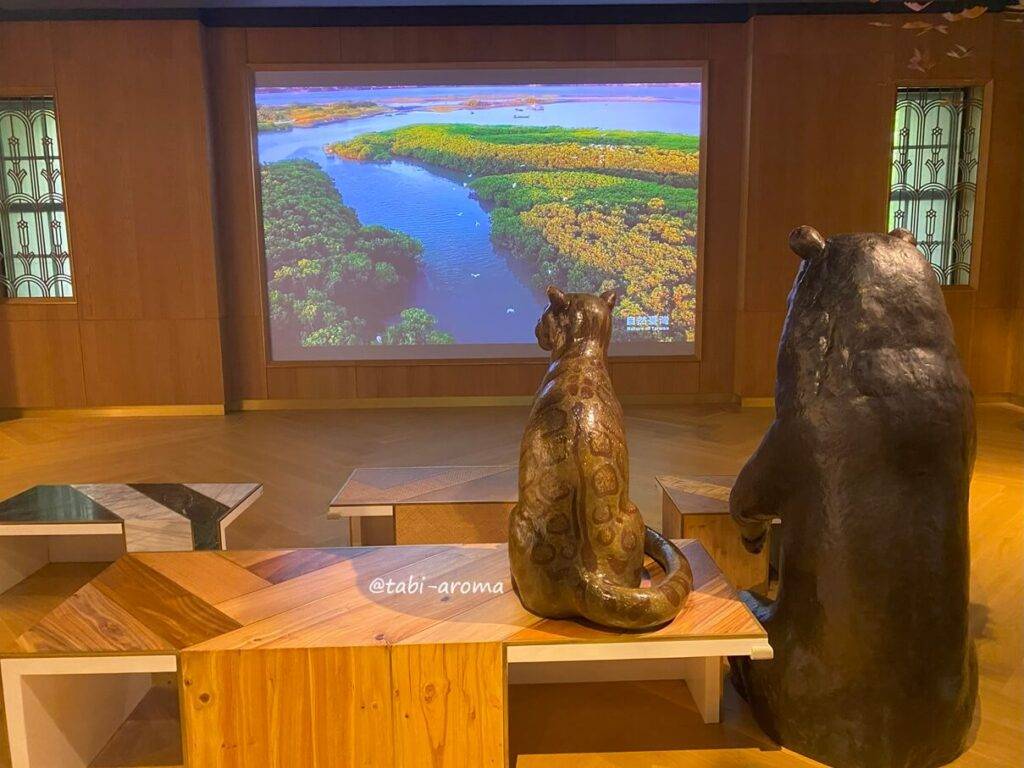 台湾を代表する黒熊と雲豹が仲良く座ってます。彼らと一緒に、しばしビデオを鑑賞しました。