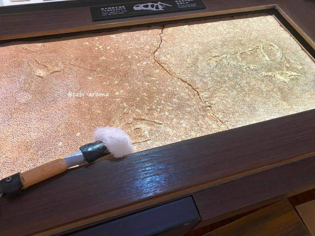 そばにある刷毛(はけ)で化石をなぞってみます。