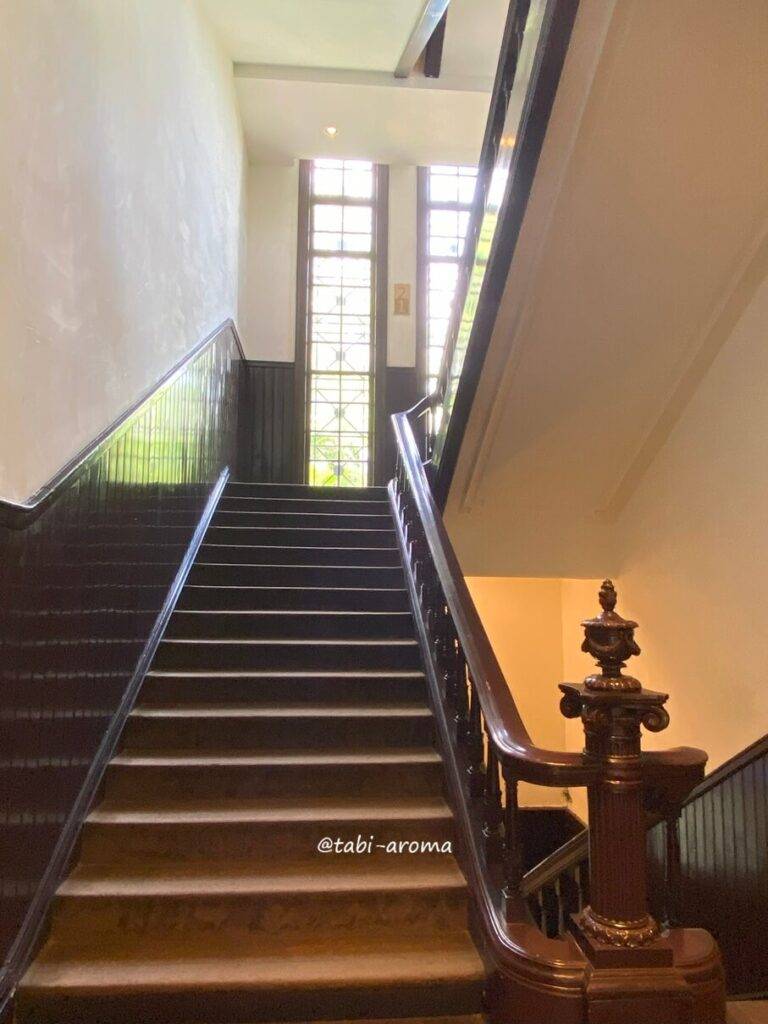 創設に関わった日本の児玉家と後藤家の家紋を組み合わせた図案が、一階の主要階段の柱の土台にも装飾として彫刻されているそうです。