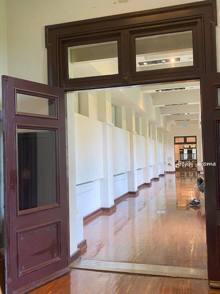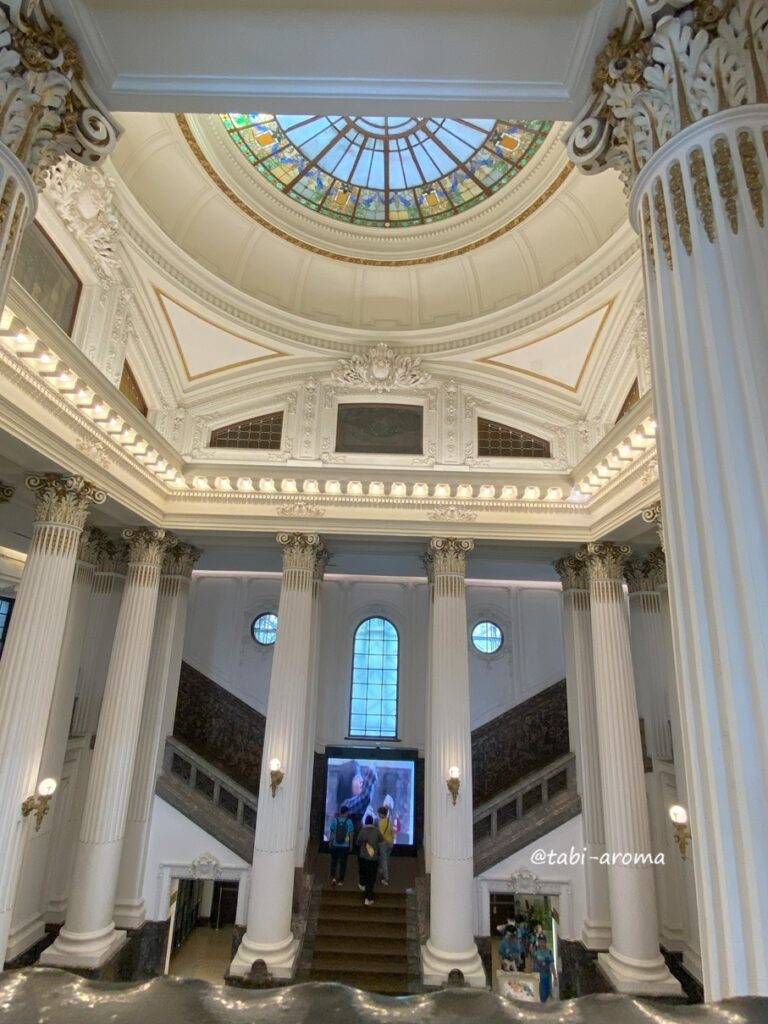 ちなみに、2階の回廊は台湾産の白い大理石と黒い粘板岩を使用し、腰板(壁の下の部分)は美濃赤坂の更紗大理石です。また、手すり柱は黄銅と、建物内を見るだけでも楽しい博物館です。