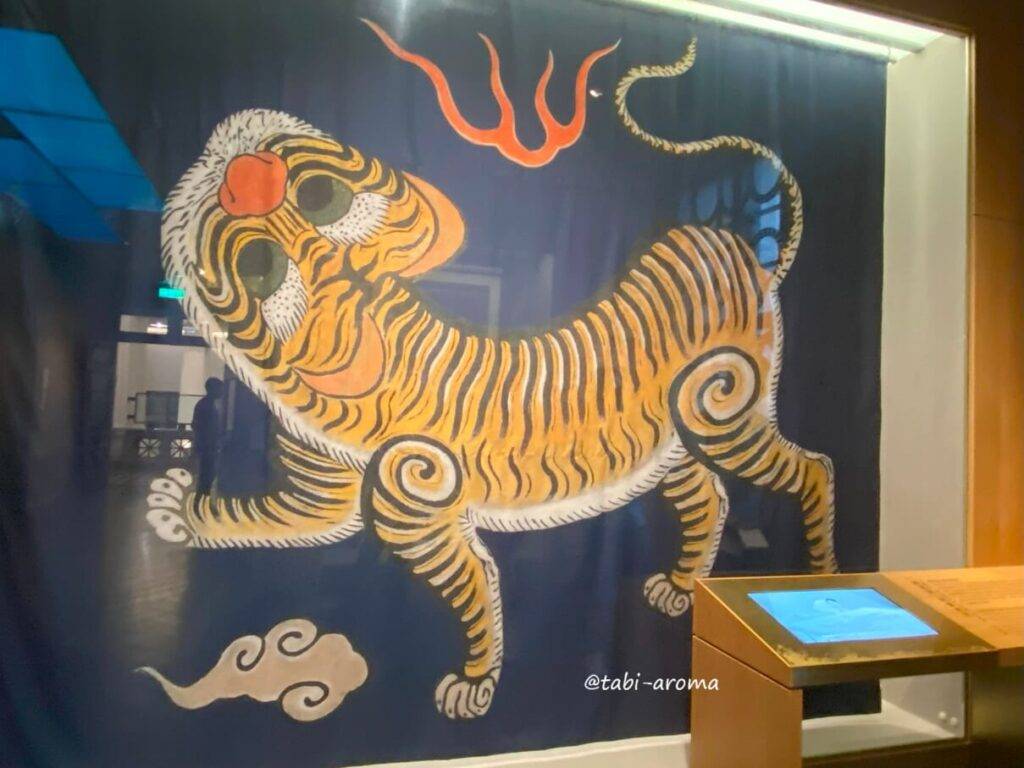2012年に修復作業が行われたのですが、その時初めてこの旗がリバーシブルになっていることが分かったそうです。よく見ると、虎の目の模様が違いますね。今では「国宝」として扱われているそうです。