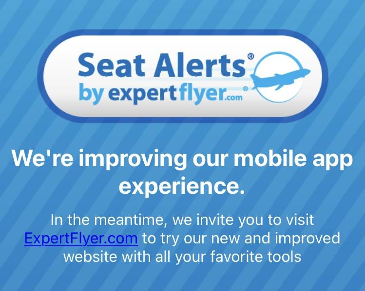 こちらから ExpertFlyer.com のサイトに変わるようです。つまり、アプリは完全にWebサイトに移行したということですね。