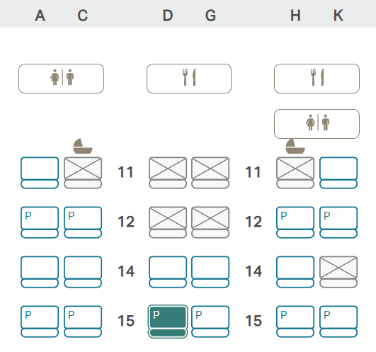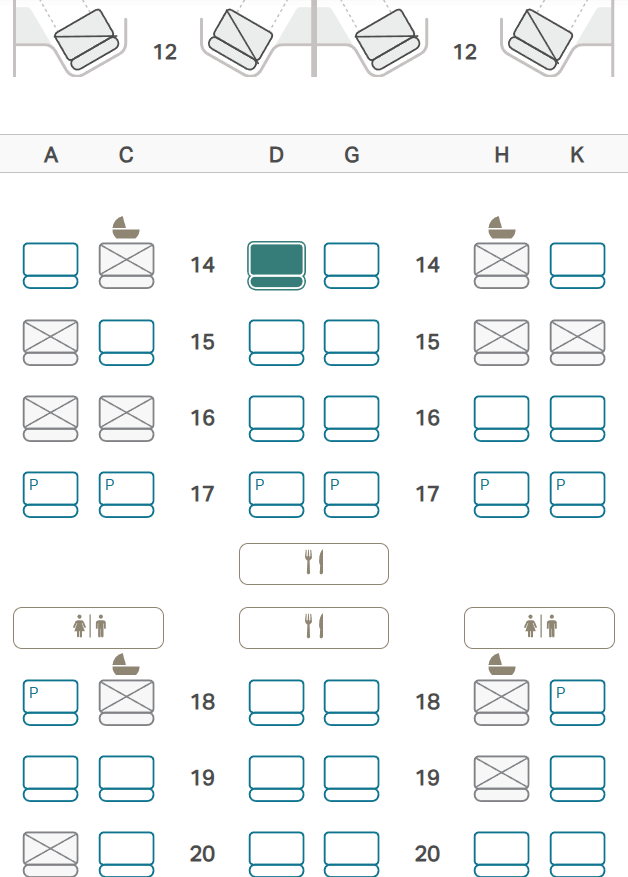 この便では、ファーストクラスの座席が付いていますが、販売はないようでブロックされていました。